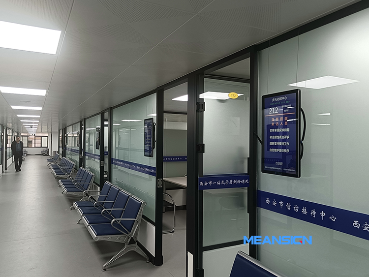 在糾紛化解中心接待大廳,放置排隊(duì)取號(hào)機(jī),前往咨詢辦理業(yè)務(wù)的群眾,在取號(hào)機(jī)選擇“登記取號(hào)”類別進(jìn)行取號(hào),接著登記區(qū)會(huì)依次呼叫號(hào)碼牌辦事人員前往窗口。在與群眾訴求溝通了解后,工作人員會(huì)指引群眾到取號(hào)機(jī),選擇相對(duì)應(yīng)的業(yè)務(wù)類別取號(hào)。排隊(duì)取號(hào)機(jī)支持多種業(yè)務(wù),自定義業(yè)務(wù)類型,號(hào)票打印,手動(dòng)取號(hào)、刷身份證取號(hào)。接待大廳登記區(qū),吊裝叫號(hào)顯示屏,顯示當(dāng)前正在呼叫的號(hào)碼,下一位辦理的號(hào)碼,維護(hù)現(xiàn)場秩序,規(guī)范業(yè)務(wù)流程。每個(gè)接待室門口,同樣安裝豎屏顯示屏,顯示每個(gè)接待室的門牌號(hào)、日期時(shí)間、單位名稱、溫馨提示等信息。當(dāng)有業(yè)務(wù)辦理排隊(duì)時(shí),門口屏?xí)棾雠抨?duì)叫號(hào)隊(duì)列,顯示當(dāng)前辦理的號(hào)碼,下一位辦理的號(hào)碼。